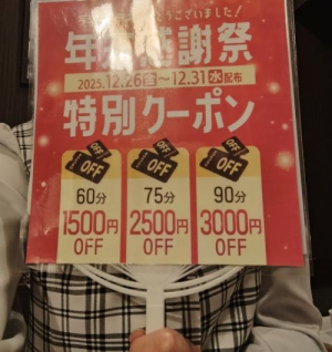 1月18日12時15分頃からお世話になった者です。毎度のことではありますが丁寧なサービスで楽しく充実した60分を過ごすことができました。ありがとうございました。またお会いできる日を楽しみにしています。