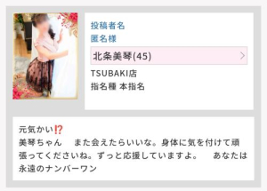 美琴ちゃんへ まさかまさかの返信嬉しいです。美琴ちゃんのことだから俺が誰かはわかっているはず。神対応に感謝しかありません。 ずっとずっとモヤモヤ。でも美琴ちゃんをいつも応援していました。 本当に素敵な女性。人間性が本当にいい。 仕事が休みになったら逢いに行くね。感動の再会❗楽しみにしています。身体に気を付けて頑張ってくださいね。ずっとずっとずっと応援していますよ