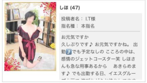 しほさん この前は60分 90分 楽しい時、ありがと。 おかげ様で、骨抜きにされて日々、 抜け殻です笑 次回は、いつなのか こころまちに、待ってます♪