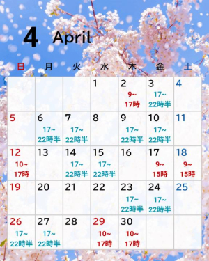 次回出勤 4/12 (日)