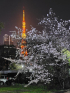 飲み会のあと、着物で芝公園へ…🌸 東京タワーと桜綺麗😍