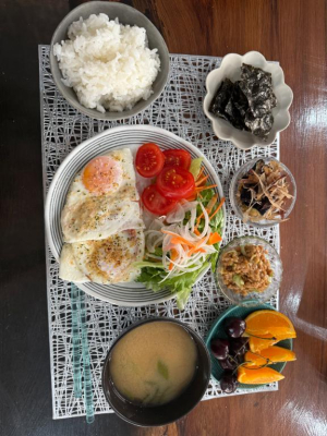 おいしそうな朝ごはん。隣にも、お◯り、うまそうです。どっちも食べたいけど、あえて後者を選びたい。